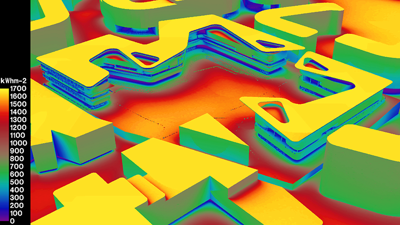 Shadow Analysis, Solar Irradiance, and Glare Simulations are useful designs against solar heat gain, optimize solar photovoltaic (PV) design, and prevent discomfort glare in our built environment.